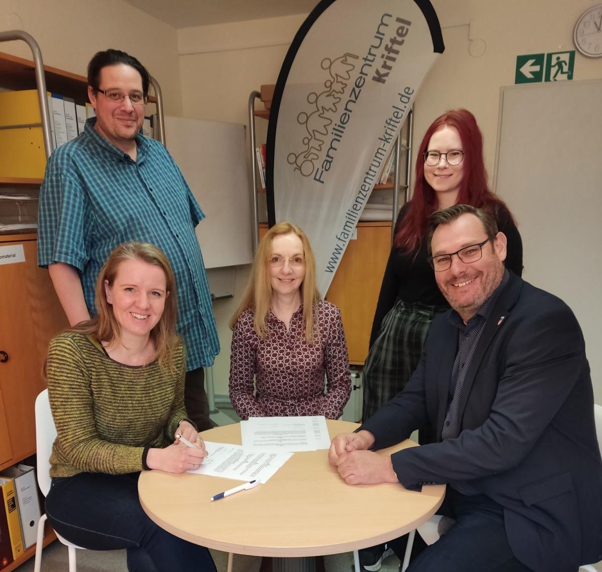 „Wir freuen uns sehr“, das war der Tenor aller Anwesenden bei der symbolischen Unterzeichnung des Kooperationsvertrages zwischen Diplom-Soziologin Lydia Rauh als Vertreterin des Familienzentrums Kriftel und Christine Krempel als Vertreterin für den Kirchort St. Vitus der Katholischen Kirchengemeinde St. Elisabeth Hofheim-Kriftel-Eppstein am Dienstagvormittag. Schon länger habe man sich gegenseitig unterstützt, auch Räumlichkeiten der Kirchengemeinde haben das Familienzentrum schon nutzen können, lobte auch Bürgermeister Christian Seitz. Nun möchte man sich noch intensiver bei der Bewerbung von Veranstaltungen gegenseitig unterstützen.